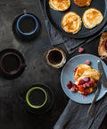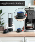 The espresso mug set makes every morning a special experience. The mugs have a modern, matte black exterior that gives them an elegant look. Inside, they surprise with a shiny, strong color. The high-quality earthenware processing ensures prominent colors and high wear resistance.