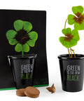 SET - Black pot with 4-leaf clover seeds