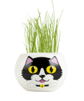 SET - Pot with grass seeds, black cat